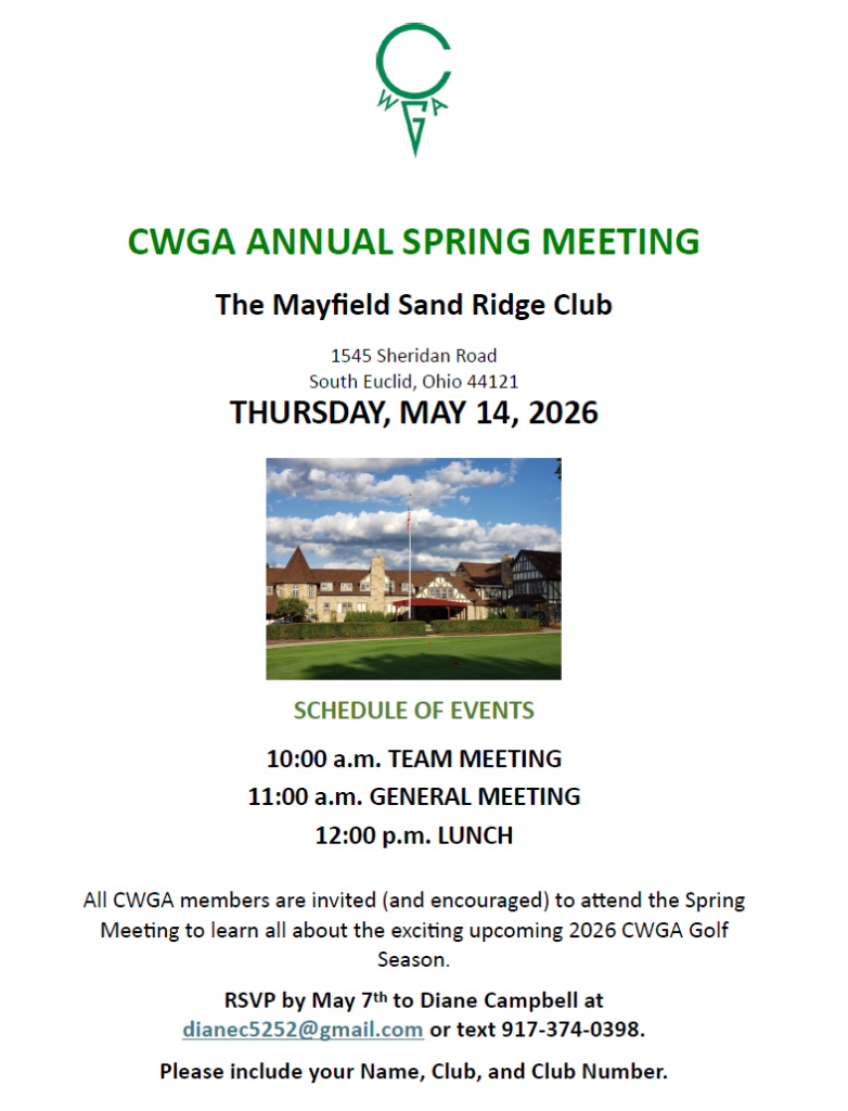 Spring Meeting CLEVELAND WOMEN’S GOLF ASSOCIATION ***************************************************************************************************** Click Here -> Diane Campbell